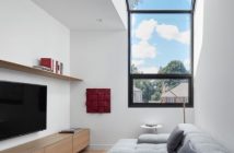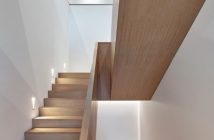 Zanimljiva kompozicija krova do izražaja dolazi na kosom stropu iznad unutarnjeg središnjeg stubišta gdje prodire prirodno svjetlo kroz veliki krovni prozor. Naglasak na svjetlu se doživljava u cijelom domu s obzirom na velike staklene površine koje sežu od poda do stropa i prozor koji se sa zida preklapa na krov.