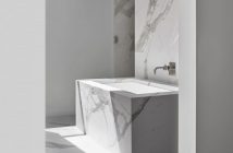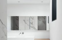 Prostorom prevladavaju velike bijele površine zidova i stropova, boja prirodnog drva na podnim oblogama i namještaju. U kupaonici nas s prirodom povezuje uzorak mramora i prozor koji se sa zida preklapa na krov.